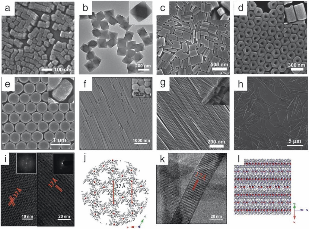Figure 2, Porphyrin nanocrystals with different morphologies and sizes