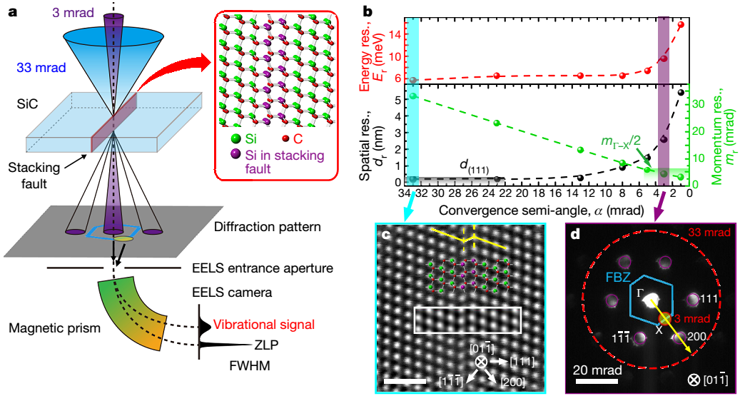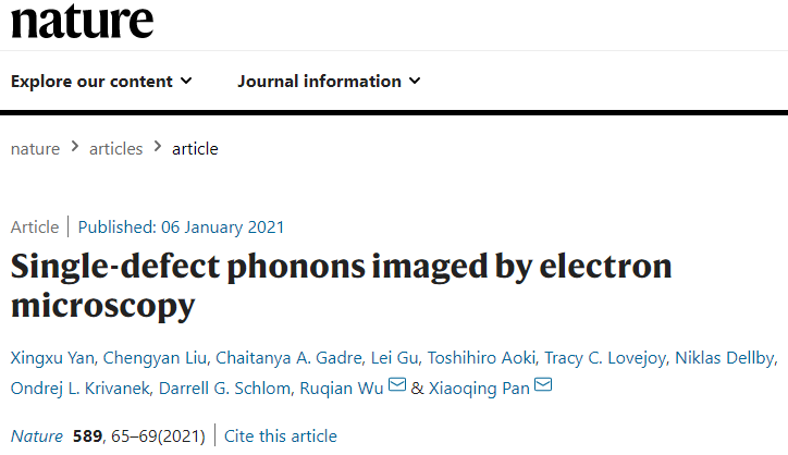 Recently, Nature (IF 42.7) published a paper online entitled with “Single-defect phonons imaged by electron microscopy”. The detection and analysis of a single plane defect has been realized by the combination of experiment and theoretical calculation. The detailed phonon states of defect near the brillouin zone are achieved by moving the location of momentum space. The thermal conductivity of materials significantly affects the heat dissipation and actual lift of devices. For nonmetallic materials, phonon is considered to be the main carrier of heat conduction. Generally, it is believed that the introduction of defective structures hinders the propagation of phonons and causes a decrease in thermal conductivity of materials. However, the interaction mechanism between phonons and internal defects of materials is still unclear. Specifically, how the defect affects the local phonon dispersion relationship E(q) and phonon scattering has not been resolved. Limited by the spatial resolution of measuring tools and the development of theoretical methods, there are few reports on the measurement and analysis of thermal conductivity and phonon spectrum of a single defect, both experimentally and theoretically.