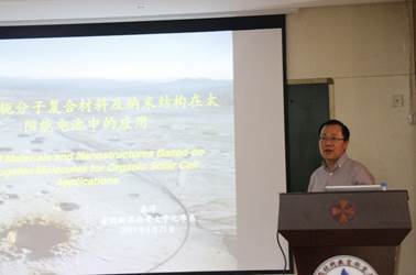 进行学术交流,并做了题为“有机共轭分子复合材料及纳米机构在太阳能电池中的应用”的学术报告。本次学术报告讨论会由材料学院副院长/特种功能材料重点实验室副主任白锋教授主持,学校相关领域的老师和学生参加了此次报告会。