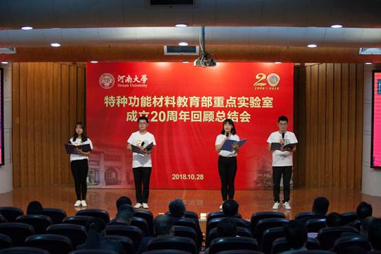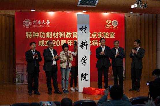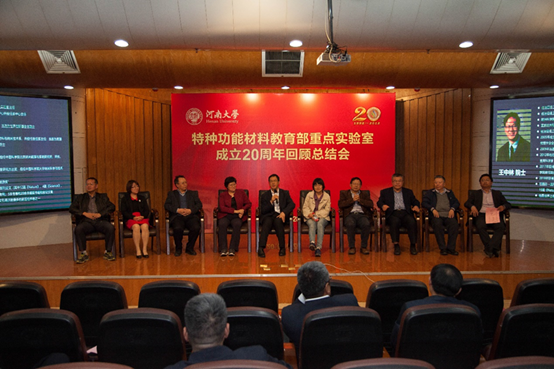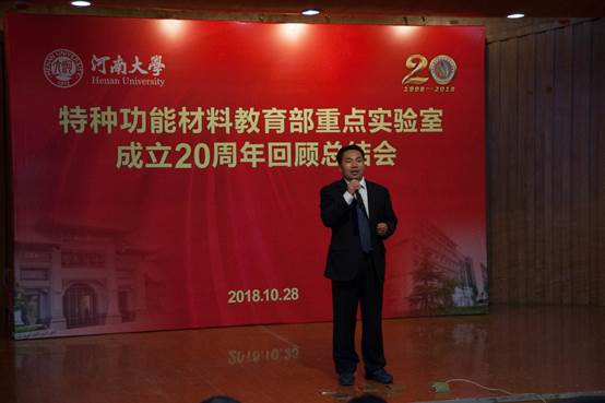 特种功能材料教育部重点实验室成立20周年回顾总结会在金明校区行政楼二楼报告厅举行。中科院北京纳米能源与系统研究所王中林院士,中国科学技术大学谢毅院士、张振宇教授,苏州大学迟立峰教授,中科院化学研究所王春儒、宋卫国研究员,国家纳米中心唐智勇研究员,北京理工大学杨国昱教授,复旦大学俞燕蕾教授,中科院过程研究所王丹研究员等光临,校党委书记卢克平、校长宋纯鹏及学校相关职能部门、兄弟单位负责人出席,实验室毕业生代表和实验室全体师生参加了本次会议。