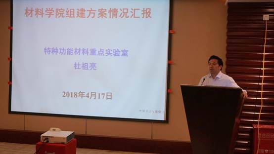 特种功能材料重点实验室常务副主任杜祖亮对材料学院组建方案进行了汇报。他从国家和区域经济发展需求、优化学科布局需求,高端品牌本科生培养需求、高水平科研机构发展需求等方面阐述了建立材料学院的意义和必要性;汇报了特种功能材料重点实验室/高效显示与照明技术国家地方联合工程研究中心的发展历程和目前iQQTV