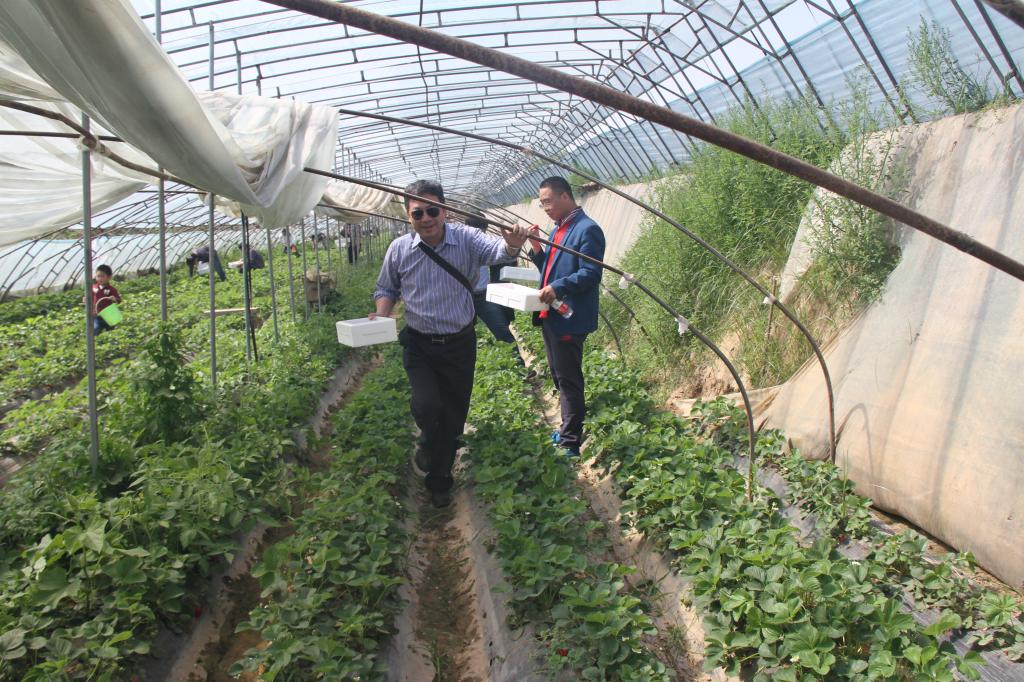 2017年4月28日上午,春风拂面,艳阳高照,特种功能材料重点实验室20多名老师来到中牟雁鸣湖附近的草莓采摘基地,开展“季春寻莓”活动。户外的大好春色早已让老师们兴致勃发,热情高涨,一进草莓地,大家就忙活起来,对红彤彤的草莓“动起手来”,边吃边摘,不亦乐乎。最后,大家虽然汗流浃背,但都收获满满,兴奋之情溢于言表。此次活动,不仅让大家在繁忙的工作中得到片刻的放松,也使大家在“五一”劳动节来临之际感受了一把劳动者的不易与快乐。