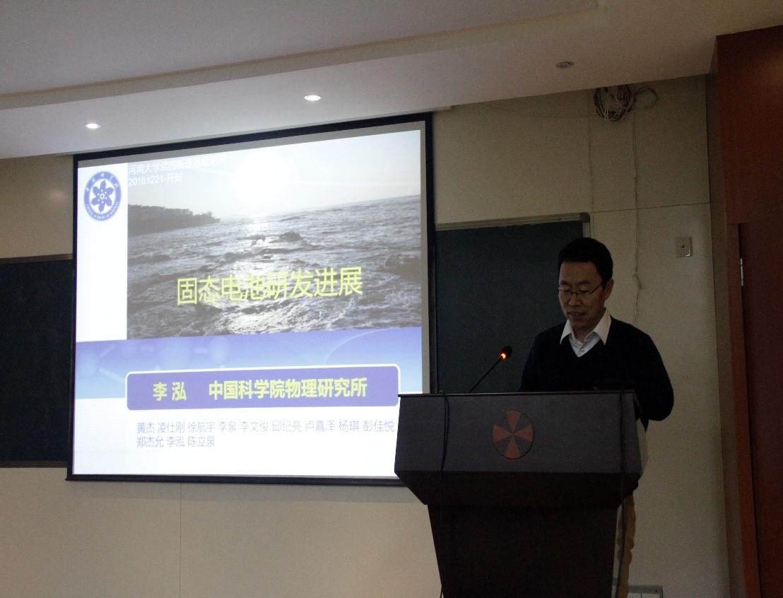 12月21日,应特种功能材料重点实验室邀请,中国科学院物理研究所研究员,北京凝聚态物理所副主任李泓来实验室进行学术交流,李老师为iQQTV 师生做了题为“固态电池研发进展”的学术报告。本次报告会由特种功能材料重点实验室省特聘教授武四新主持,特种功能材料重点实验室相关领域的老师和学生参加了此次报告会。