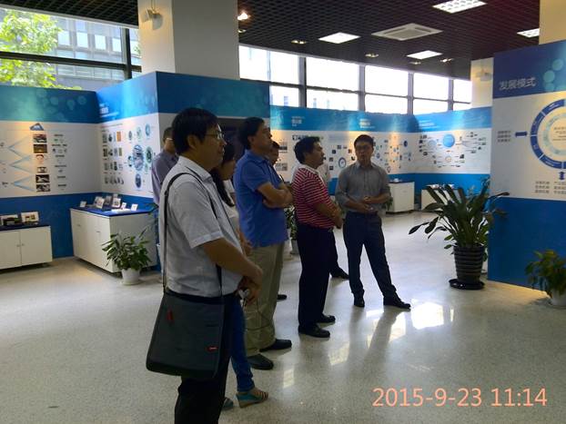 9月23日上午,调研团前往苏州纳米工业园区进行调研访问,园区内的苏州纳米科技发展有限公司的副总裁张峰热情接待了大家。在座谈会上,张峰副总裁介绍了公司的经营理念,以“纳米技术应用产业生态圈”为指导,致力于为推动纳米技术创新与产业化提供优越的基础设施、公共平台、产业服务及产业投资。双方针对纳米技术产业化上遇到的问题以及未来纳米技术所能引领的新型产业进行了深入而广泛的交流,随后在公司总经理汪志超的引领下调研团对公司一楼展厅进行了参观,汪总详细介绍了公司的发展历程、产业战略和未来的规划,并详细讲解了公司在能源与清洁技术、LED照明、印刷电子、石墨烯碳材料和生物医药等纳米技术的产业化的实例。他介绍说,苏州纳米城规划占地100公顷,建筑面积150万平方米,公司自2010年9月成立以来,目前已吸引了国内外众多高校、科研院所及企业入驻,初步形成涵盖纳米技术各领域的大规模全新模式产业社区。调研团对纳米工业园区运行机制和推进产业化进程全方位配置表现出极大的兴趣,双方就以后iQQTV