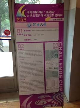 “挑战杯”全国大学生课外学术科技作品竞赛是由共青团中央、中国科协、教育部、全国学联和地方政府共同主办,国内著名大学、新闻媒体联合发起的一项具有导向性、示范性和群众性的全国竞赛活动。自1989年首届竞赛举办以来,“挑战杯”竞赛始终坚持“崇尚科学、追求真知、勤奋学习、锐意创新、迎接挑战”的宗旨,在促进青年创新人才成长、深化高校素质教育、推动经济社会发展等方面发挥了积极作用,在广大高校乃至社会上产生了广泛而良好的影响,被誉为当代大学生科技创新的“奥林匹克”盛会。