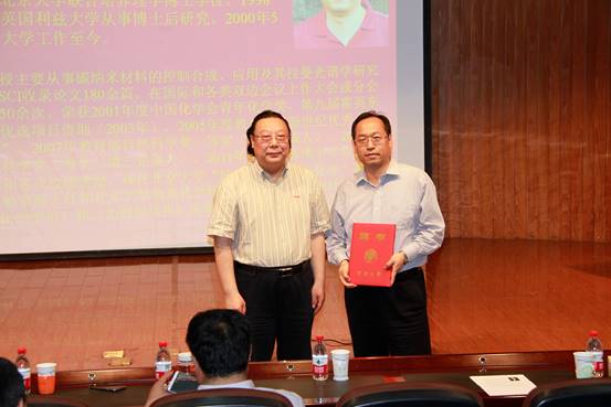 金明校区新行政楼二楼报告厅隆重举行。常务副校长赵国祥教授出席受聘仪式,特种功能材料重点实验室的全体师生及其他兄弟院系的相关师生参加受聘仪式和学术报告会。会议由特种功能材料重点实验室常务副主任杜祖亮教授主持。