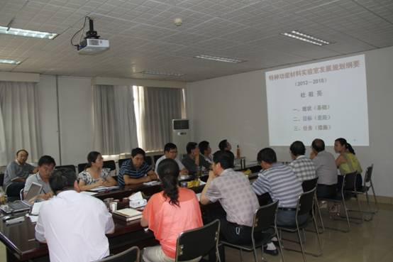 2013年8月31日,特种功能材料重点实验室在三楼报告厅召开暑期工作会议。31日上午主要就“研究生培养改革措施和创新举措、科研管理工作规划、大型仪器设备管理制度”三个议题展开讨论,由实验室常务副主任杜祖亮教授主持。31日下午的议题是:项目首席科学家制度和973项目申报经验交流,由实验室党总支书记赵东保教授主持。实验室的特聘教授、课题组长、室务委员会成员等参加了该次会议。