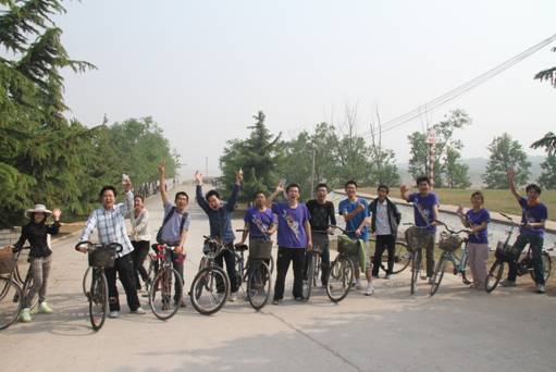 早上8点30分,全体师生在实验室门口集合,大家骑上自行车前往目的地。
