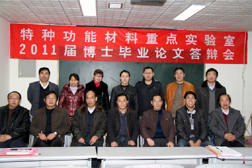 2011年12月13日,特种功能材料重点实验室2011年下半年博士、硕士学位论文答辩会在实验室二楼学术报告厅举行。