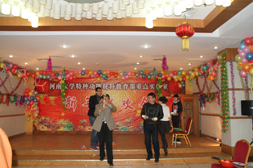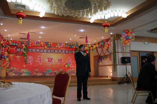 实验室党总支书记崔元臣教授首先代表实验室致新年贺词,崔书记首先感谢学校领导、职能部门和兄弟单位一年来对实验室的关心和支持,在充分肯定了实验室过去一年所取得成绩的同时,也对明年的工作提出了更高的要求。宋纯鹏副校长代表校领导致词,他首先代表学校对实验室过去一年在科研领域取得的丰硕成果表示祝贺,并希望实验室师生继续努力,在今后的工作中为学校的发展做出更大的贡献,并祝实验室全体师生身体健康,工作顺利。最后宋校长对同学们为晚会付出的努力表示感谢并预祝晚会取得圆满成功。