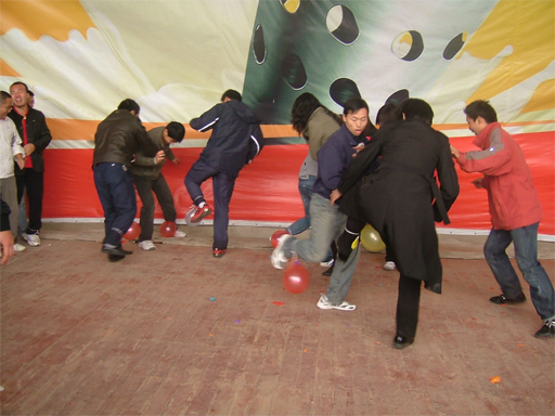 在万岁山,师生汇聚于一舞台之上,进行了跳绳、呼啦圈接力以及踩气球比赛。教师和同学们争先恐后的积极参与,尽展自己的风采。各组队员尽心尽力为各队争光,未参加的人员也不甘示弱,呼喊口号为各队加油。比赛场上,不时发出阵阵笑声,呼喊声。经过激烈的角逐,教职工队获得跳绳和呼啦圈接力冠军,研一化学二组赢得踩气球比赛的胜利。