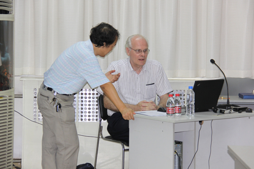 在为期一周的报告里,M.A. Van Hove教授首先结合自己的生活和科研经历分析了东西方文化、教育、思维方式的差异,认为我们只有更好地了解西方科学家的思维方式和特点,才能与之开展良好的合作。之后的时间里,M.A. Van Hove教授又就Order of Magnitude and Uncertainty, Optimization Methods in Materials Science, Birth and Growth of a New Field: Nanoscience, Quantum Well States, Nanoparticles, Quasicrystals – From 6D to Frying Pans等问题报告了他在上述方面所开展的研究工作。