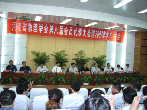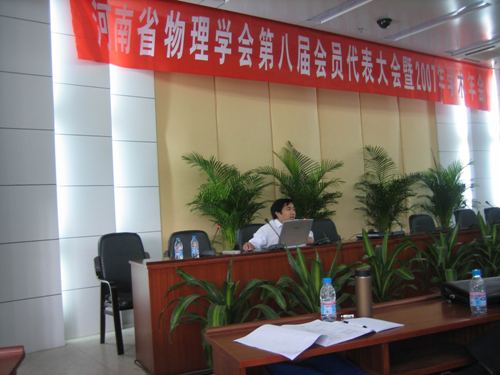 由河南省物理学会主办,洛阳师范学院承办的河南省物理学会第八届会员代表大会2007年度学术年会于2007年5月19日-20日在洛阳师范学院召开。实验室杜祖亮教授、李蕴才教授、周少敏教授及近20名博士和高年级硕士研究生参加了本次学术研讨会。杜祖亮教授还受邀做了大会报告,受到了同行们的充分肯定。郑州大学霍裕平院士、南京大学龚昌德院士、中科院高能物理研究所学术委员会主任杜东生研究员也参加了本次会议并做了大会报告。