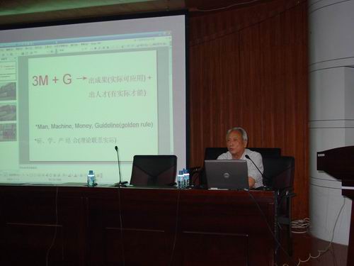 随后,老一辈科学家、原中科院兰州化学物理研究所副所长金振声教授和原北京大学化学学院分子动态与稳态结构国家重点实验室黄惠忠教授结合自己的科研经历,就研究生阶段的学习和科研问题做了深入的讲解。金振声教授还提出并详细解释了3M(Man人才、Machine设备、Money经费)+G(Guideline坚实活跃的学术思想)=出成果+出人才的思想。黄惠忠教授结合北京大学的情况就大学生为什么要考研究生以及如何报考研究生等问题进行了详细的解释,引导同学们走出一些思想上的误区。
