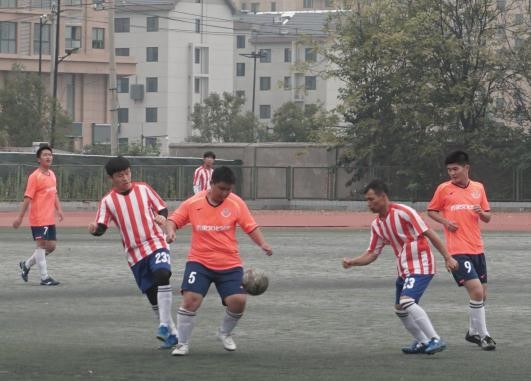 上半场结束的时候,对手暂时领先。中场休息后,赛场气氛愈加激烈。对方球队利用体力与速度展开反攻,我方则发挥技术与经验优势与之周旋,双方扬长避短,激烈交锋,场面异彩纷呈。经过一番苦战,我方球队最终赢得比赛,亮眼表现获得场边观众热烈掌声。