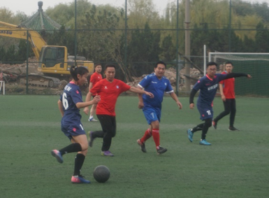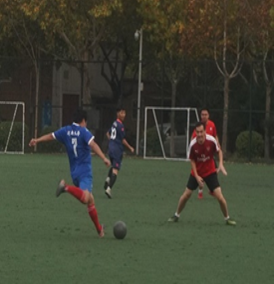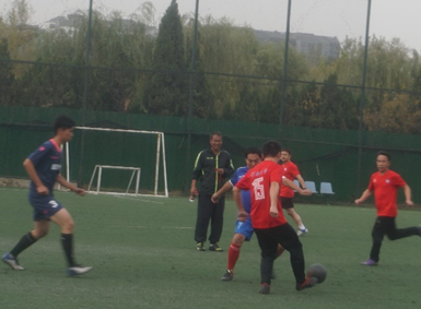 第一节比赛结束后,大家集体合照留念。材料学院院长、特功实验室主任杜祖亮老师为鼓舞学生队热情,临时退出教工队,加入了学生队,并充任场上教练,进行战术指导和组织协调,真正体现了借比赛切磋球艺,增进师生情感的赛事宗旨。在他的指挥带动下,“学生队”士气勃发,渐渐进入了理想状态。中场休息后,下半场比赛开始,赛场气氛愈加激烈。双方球员们都毫不示弱,细腻的脚法,默契的配合,缜密的队形,你来我往,攻防相间,期间出现的精彩射门总能获得场边观众的欢呼与掌声。