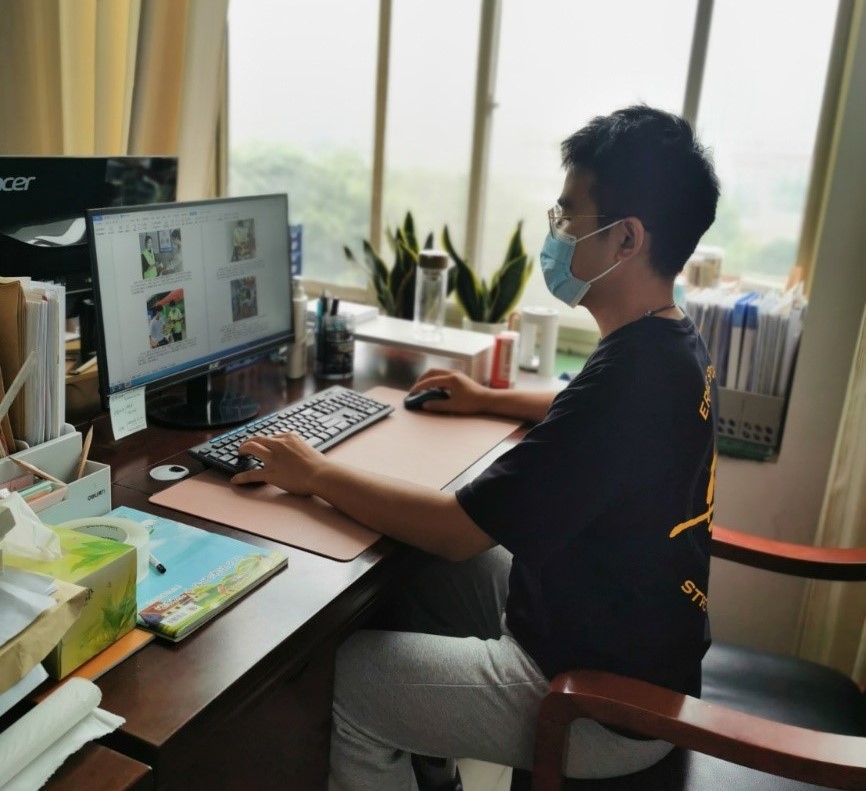 图 吴杰涛进行与北京大学学生线上南乐县抗疫专题讲解的调试工作