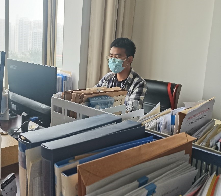 图 吴杰涛在南乐县团委办公室处理抗疫志愿者工作