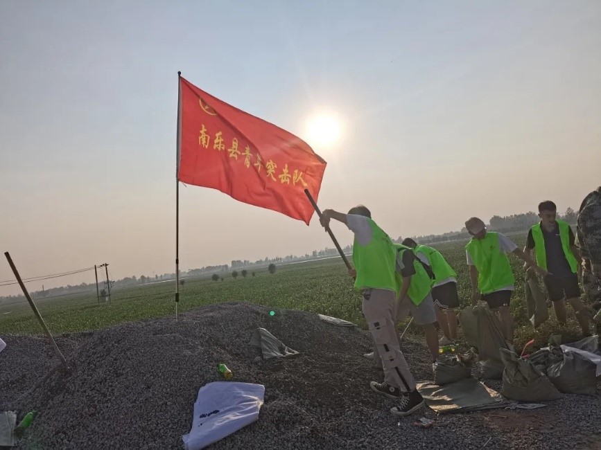 图 吴杰涛与当地群众、志愿者冒雨加固堤坝
