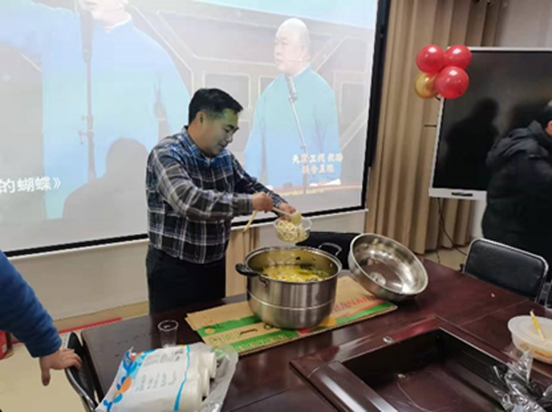 因疫情防控、科研实验等原因,除夕当天,学院共有16名学生春节留校。为了让留校学生能够度过一个祥和的春节,学院领导提前为学生配备年夜饭,并对除夕和春节做了详尽的安排。材料学院二楼会议室内洋溢着吉祥喜庆的气氛,伴随着欢快的音乐,大家感受到了浓浓的年味。
