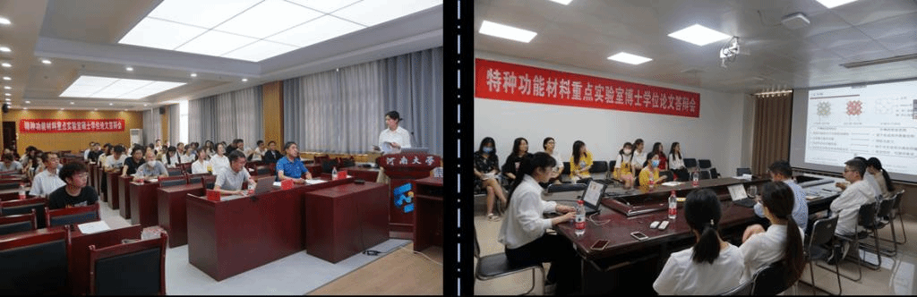 材料学院特种功能材料重点实验室成功举行博士生、硕士生学位论文答辩。为切实保障广大师生的生命安全和身体健康,最大限度地减少疫情影响,本次答辩主要采用腾讯会议、线上与线下相结合的形式,通过语音对话、PPT展示、视频共享等方式进行,共有9位博士毕业生和59位硕士毕业生参加。