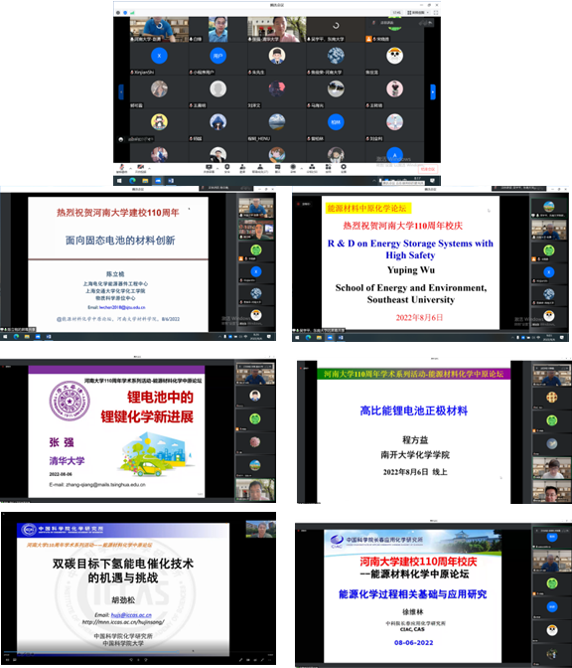 110周年学术系列活动--“先进材料中原论坛-能源材料化学”报告会于2022年8月6日成功举行。会议由iQQTV