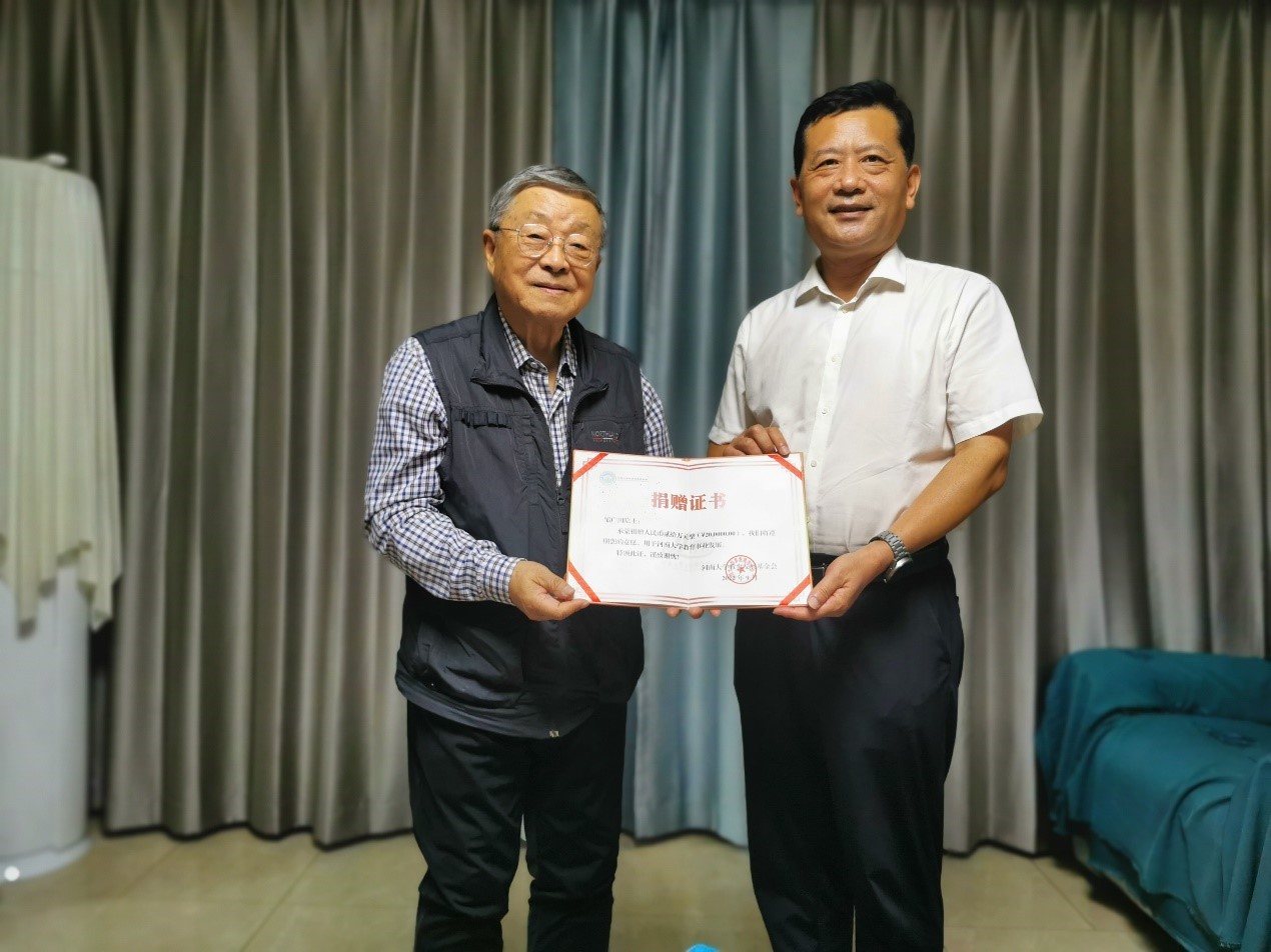 9月16日,校党委常委、副校长孙功奇带领材料学院院长杜祖亮、党委书记张霖和学院教授委员会主任程纲一行,专赴吉林省长春市看望了85岁高龄的邹广田院士。与邹广田院士会见期间,孙功奇校长代表学校感谢邹先生向学校捐款,感谢先生长期以来为学校发展、尤其理工科发展做出的巨大贡献,孙校长向邹先生介绍了学校近期的发展及110周年校庆的工作,并向先生及夫人表达了深切问候。邹先生精神矍铄,向孙校长的到来表示感谢,对学校近期取得的工作成绩表示祝贺。杜祖亮院长向邹广田先生汇报了材料学院近期的工作计划和进展,邹先生认真听取了杜祖亮的汇报,对材料学院在科研方向凝练、突出研究特色,以及现有成果推广应用等方面给予了指导,邹先生对材料学院2022年继续取得国家级青年人才项目的突破,并在国家基金委重点项目/联合重点项目以及国家重大项目申报方面的良好进展给予了赞扬。随后,孙功奇校长向邹先生赠送了学校的捐赠证书以及学校教育发展基金会的纪念品。