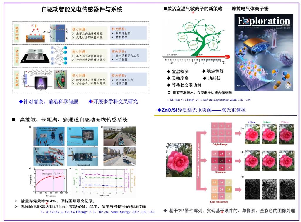 在本次学术活动中,程纲教授就“自驱动光电传感器件与系统”展开讲座,首先介绍了传感器作为物联网节点的重要性。重点报告了近几年来在自驱动传感器件方面的研究进展:(1)建立了自驱动气体离子栅调控新技术,发展出室温气体传感器、高速光电探测器。(2)建立了光电突触的多种调控手段,发展出光电突触神经网络的智能传感器件。(3)建立了无源高效的电源管理电路,实现了多模块整合,制备出自驱动传感原型器件。