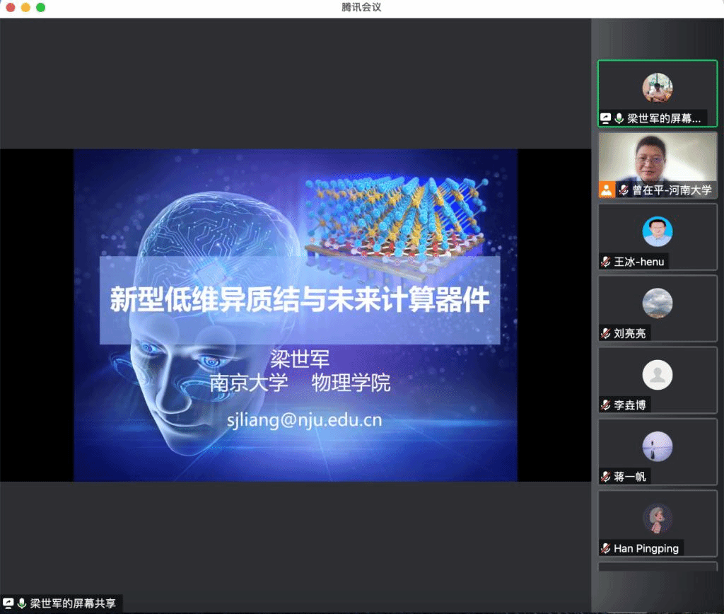 梁世军老师为大家作了题为“新型低维异质结与未来计算器件”的报告。低维材料及其异质结因其独特且丰富可调的物理性质,或将成为未来信息计算器件的有力竞争者。但是低维材料在未来计算器件应用中将会面临着诸多的挑战。其中最大的挑战之一在于理解低维材料及异质结的独特物理,从而可以被“巧妙地”应用在未来计算器件中,实现高效的信息处理。本报告从理解低维材料器件物理角度出发,介绍了新型低维异质结与未来计算器件方面的一点初步探索和思考。