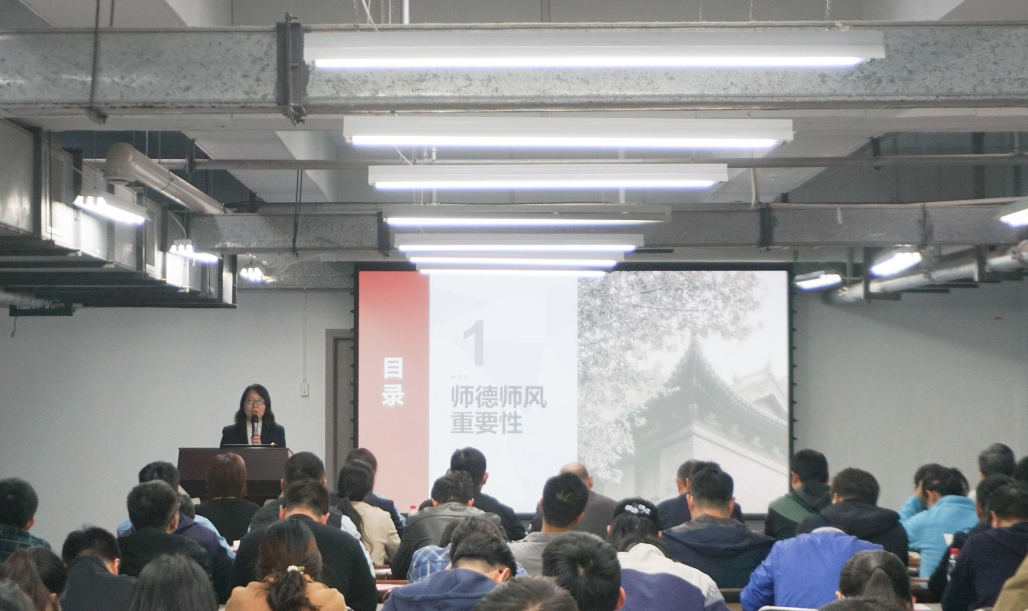 好老师”为主题,围绕“师德师风的重要性、师德师风警示案例通报、高校师德师风规范要求、做什么样的好老师”四个方面向与会教师进行讲解。同时,她结合工作实际,分析了当前师德师风建设面临的新形势和新挑战,阐述了新时代教师肩负的新使命。赵炎表示,教师不仅要具备扎实的专业知识和教学技能,还要具备高尚的道德品质和行为规范。她希望全体教职工要牢记自己的职责和使命,树立正确的教育理念,不断提高自身素质,努力做具有教育家精神的新时代好老师。