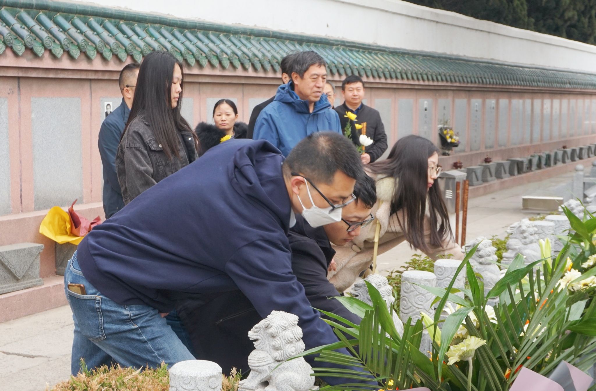 随后,在张霖和杜祖亮教授的带领下,在场师生集体默哀,并依次向三位先贤献上鲜花鞠躬致敬。