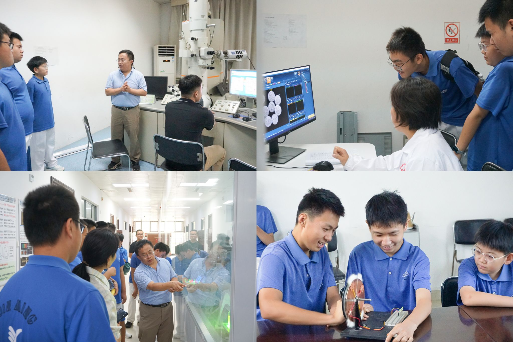 科普讲座后,在白锋教授的热情引导下,同学们参观了学院的大型设备公共平台、QLED显示技术研发平台以及自驱动纳米传感器件平台等多个先进科研平台。实验室里,各种精密的仪器在科研人员的手下仿佛拥有了生命,忙碌地进行着微观世界的探索。相关老师耐心地讲解着大型仪器的功能及其在科学研究中的应用,学生们听得津津有味,不时发出惊叹声,眼中闪烁着对科学的无限向往。