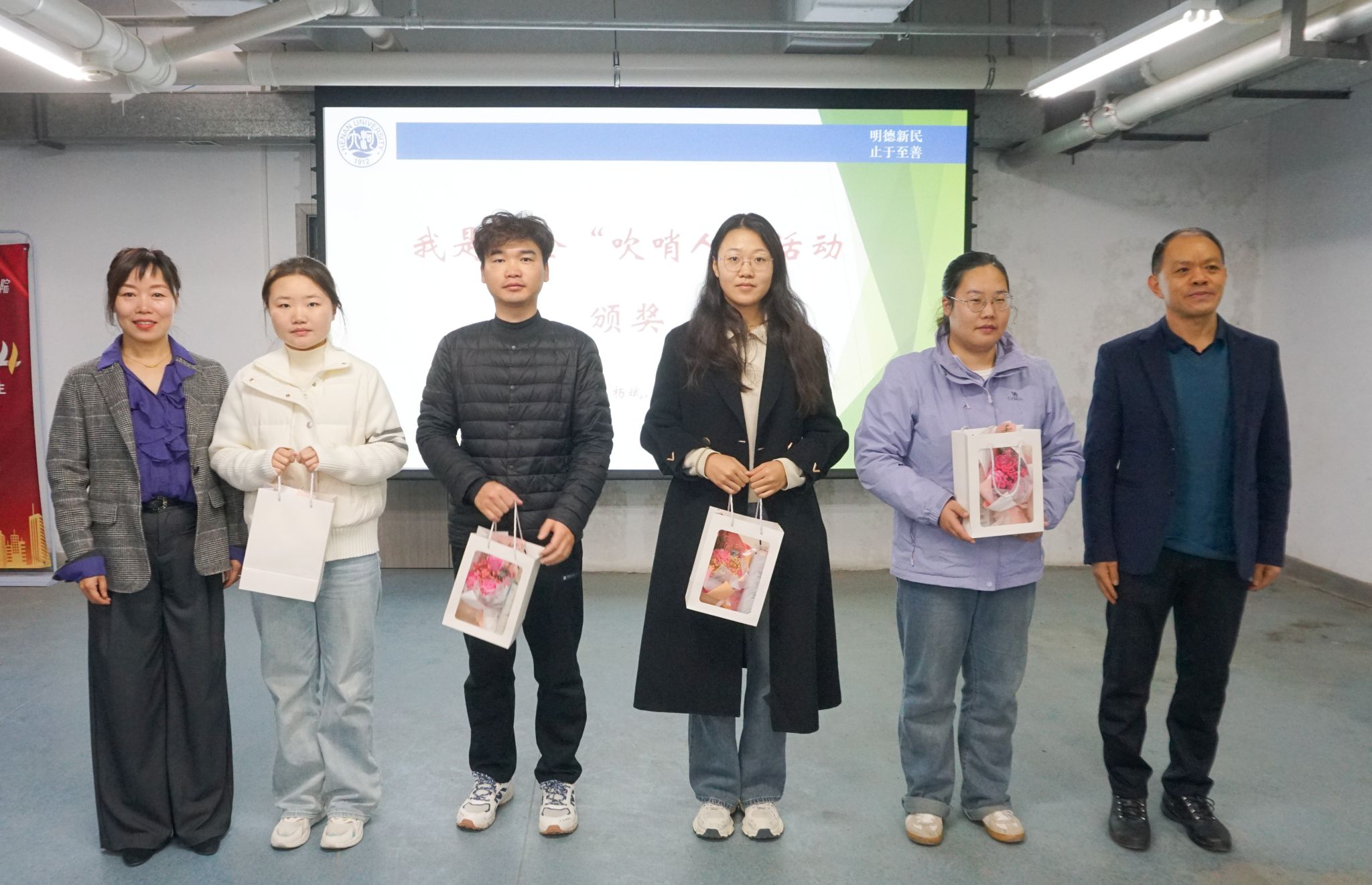 随后,刘谨、张杰共同为在“我是安全‘吹哨人’活动”中表现优异的四名同学颁发纪念品。“我是安全‘吹哨人’,查找身边安全隐患”活动已经连续进行两年,旨在培养“人人都是安全员”的理念,营造共同维护安全环境的良好氛围。