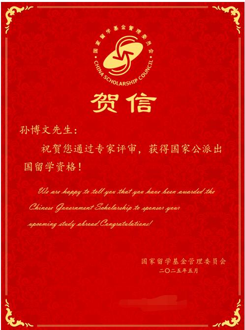 喜报:iQQTV 2022级硕士研究生孙博文获得国家公派出国留学资格