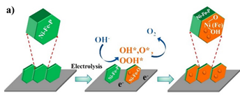 析氧反应(OER)过程中NiFePX表面重构示意图