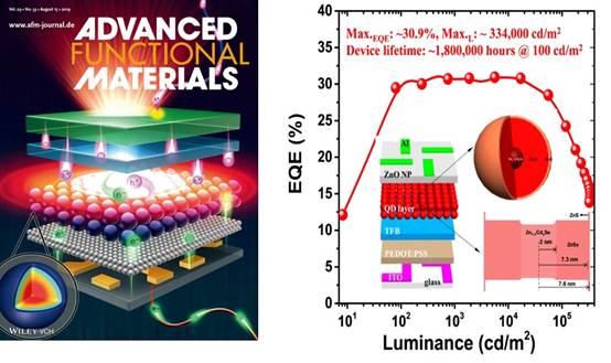 特种功能材料重点实验室/高效显示与照明技术国家地方联合中心在基于量子点的电致发光器件的研究中取得了新的突破,相关研究成果作为封面发表在自然指数期刊、国际一流期刊Advanced Functional Materials(最新影响因子15.621)上。