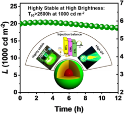 基于量子点的发光二极管(QLED)自1994年出现至今,器件的性能得到了极大提升,现已满足低亮度显示(室内显示)的要求。然而,QLED在高亮度下的短寿命仍然限制着它在户外显示和照明中的应用。