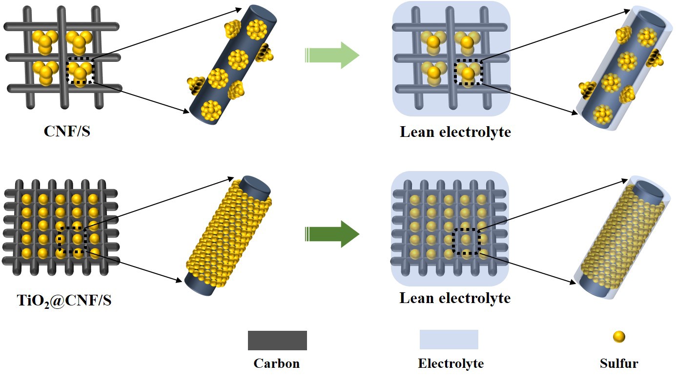 三维交联碳纳米纤维网络促进正极活性物质S/Li2S的均匀分散和电解质浸润