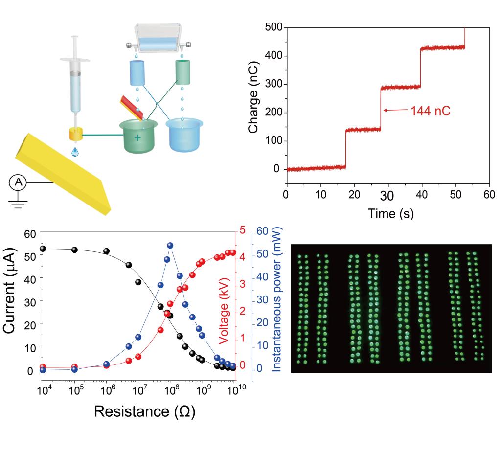 具有超高电荷密度和瞬时功率的相互激励的水滴摩擦纳米发电机
