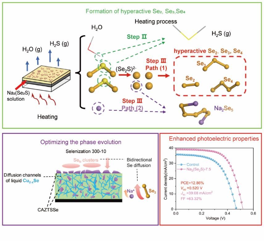 图1 高活性硒生成机理、双向硒扩散和CZTSSe器件性能