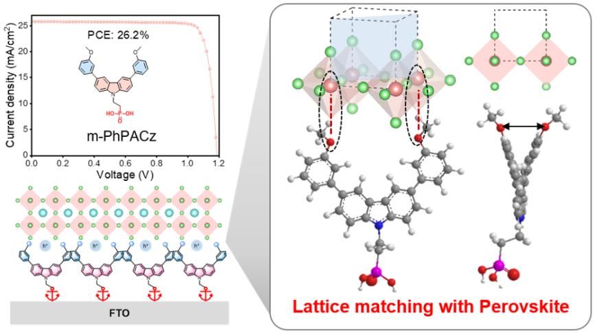 李萌课题组在钙钛矿太阳能电池空穴传输层方面取得新的研究进展,相关成果以"Tailored Lattice-Matched Carbazole Self-Assembled Molecule for Efficient and Stable Perovskite Solar Cells"为题,以Research Article形式在国际化学顶级期刊《美国化学会志》(Journal of the American Chemical Society, JACS)上发表。