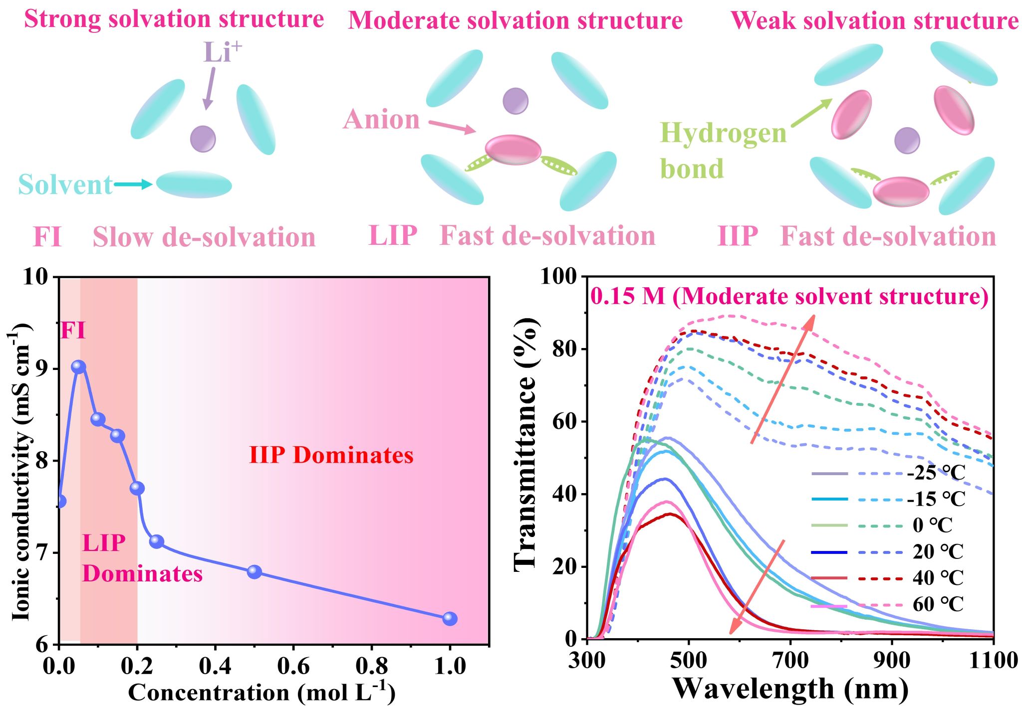 多样化的应用场景通常要求电致变色器件(ECD)在宽温域范围内具备较好的变色性能。然而,由于传统电解质存在高温下易分解及低温下反应动力学迟缓的问题,大多数ECD的工作温度范围受到限制。因此,开发一种具有宽温域且不易燃的电解质,对拓展电致变色器件的实际应用至关重要。