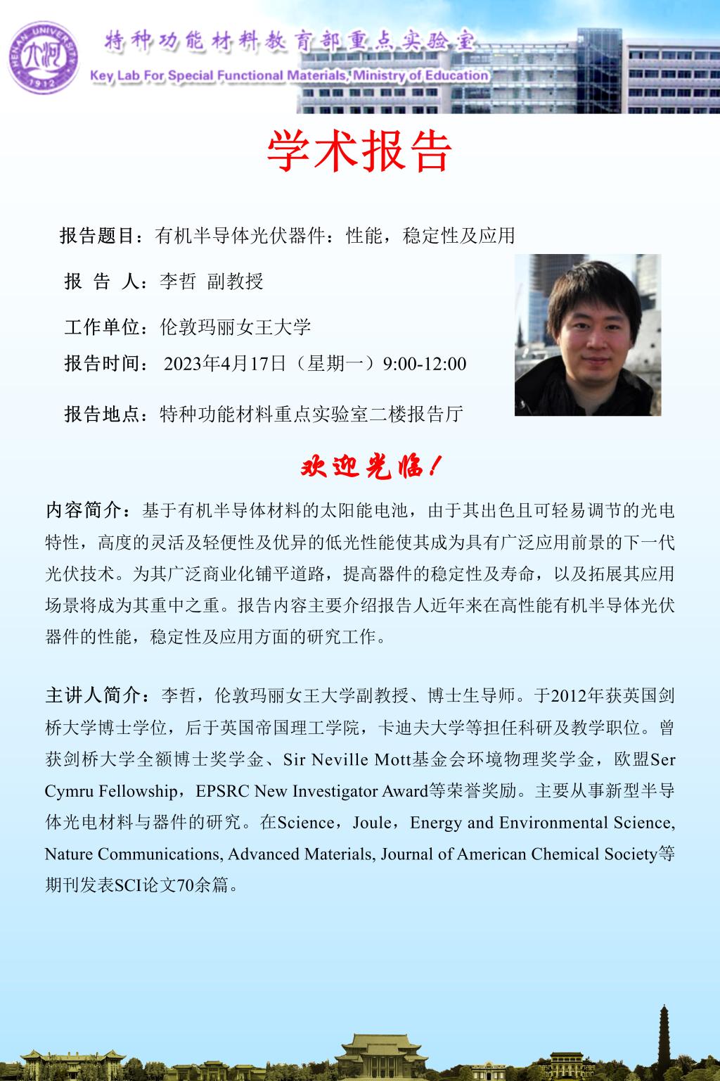 李哲:有机半导体光伏器件:性能,稳定性及应用(时间4.17)