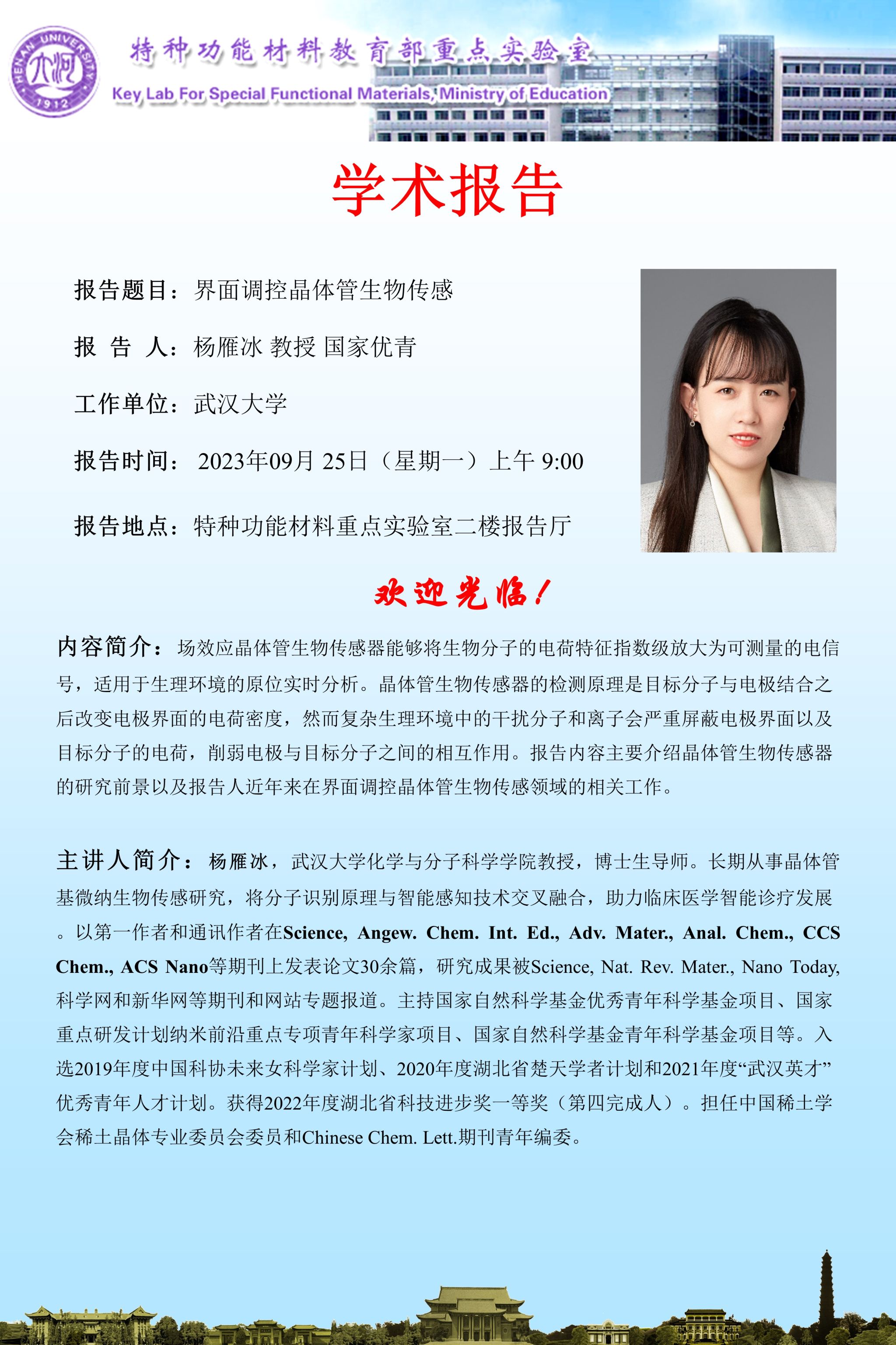杨雁冰:界面调控晶体管生物传感(时间9.25)