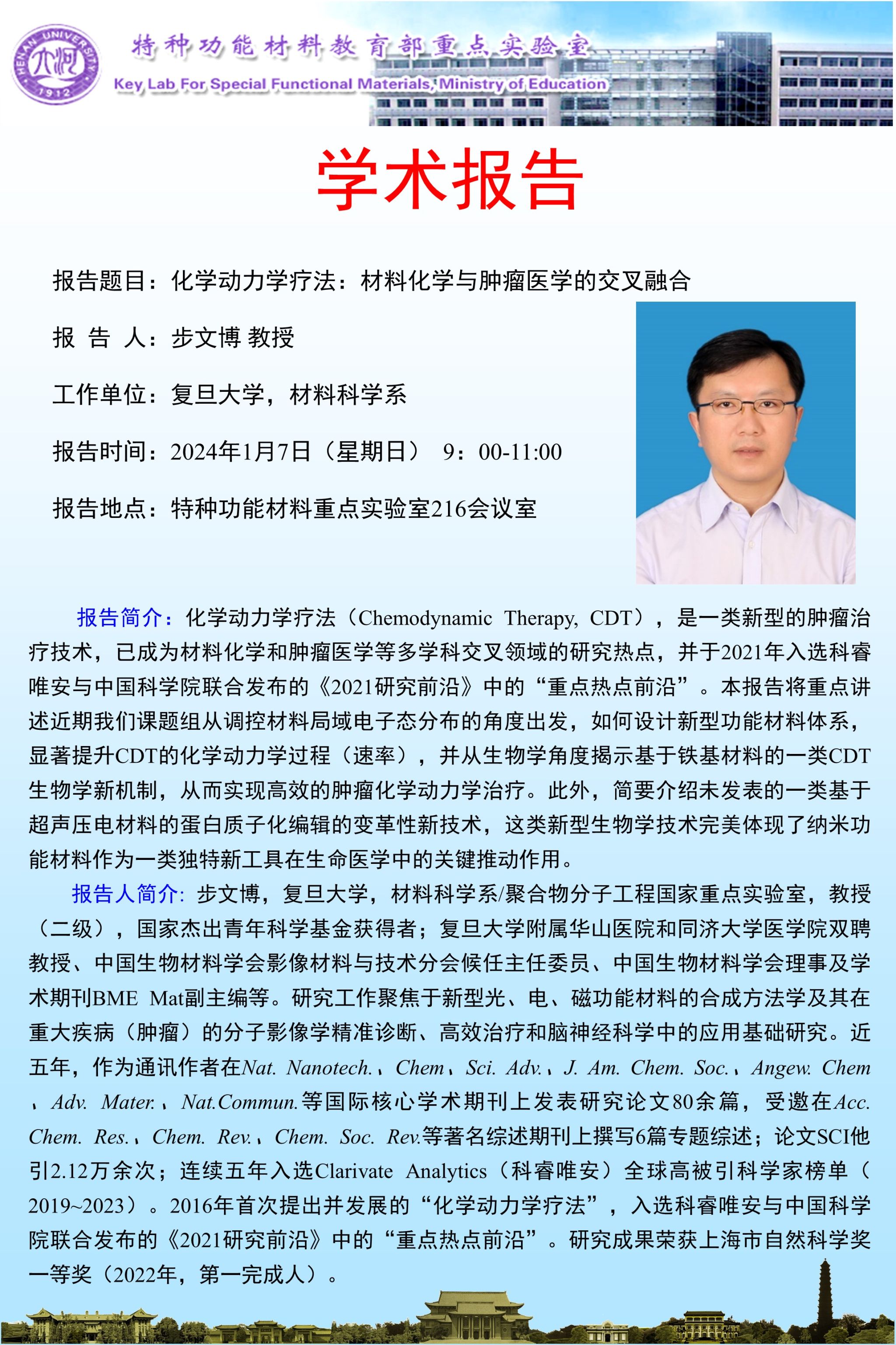 步文博:化学动力学疗法:材料化学与肿瘤医学的交叉融合(时间:1.7)