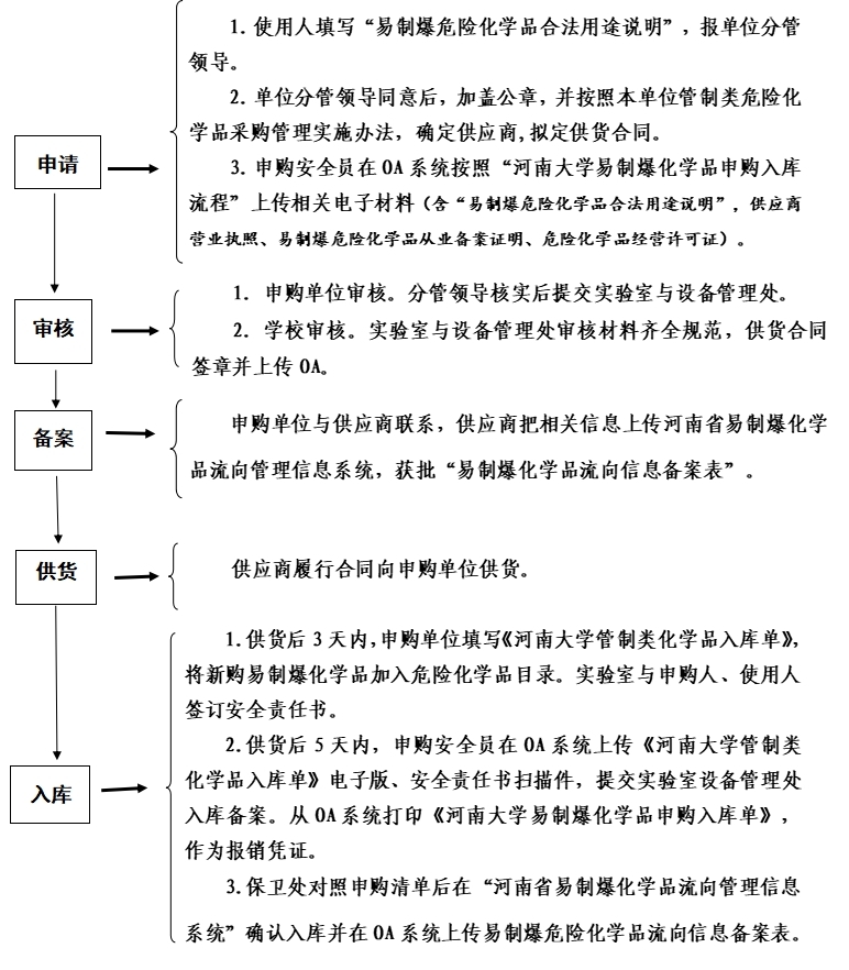 使用认真对照易制爆危险化学品名录,确定品类后,执行本流程;管制类化学品由单位统一采购、专人保管