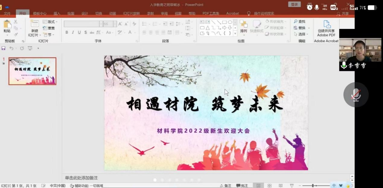 会议伊始,辅导员李雪雪代表学院对2022级新同学加入材料学院大家庭表示热烈欢迎,并对入学教育集中实施阶段的具体安排进行了详细说明。