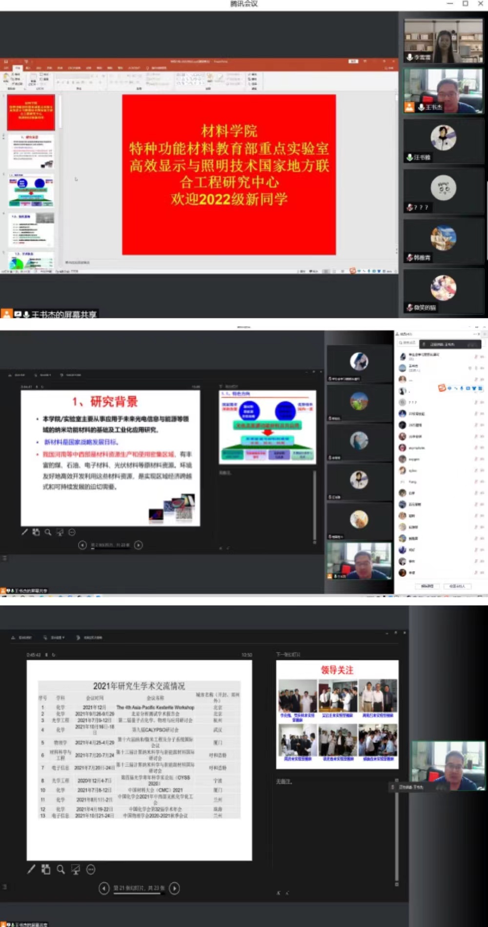 9月13日上午,进行院情线上专题教育,由材料学院副院长王书杰主讲,2022级辅导员李雪雪主持。首先,王书杰老师向2022级本科新生同学表示祝贺和欢迎,并从学院背景、学术队伍、主要研究项目、近年来的学术成果等诸多方面向同学们深入浅出地介绍了学院基本情况,让同学们提前了解学院、认识学院、感受学院,使新同学对自己的未来更有信心。同时,在信息充足的条件下进行学业规划,尽早对自己的未来进行切合实际的规划。大会结束前,最后,王书杰老师希望新同学关注自身职业发展,做好大学规划,珍惜美好青春时光,尽快适应适合大学生活。