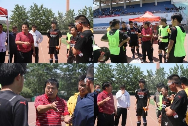 一声哨声过后,两只队伍开始激烈交锋。双方球员互不相让,比赛刚开始软件学院就表现出丰富的球队作战经验。上半场结束时,软件学院以1:0领先。节间休息时,杜祖亮院长亲自指导,讲解战略。