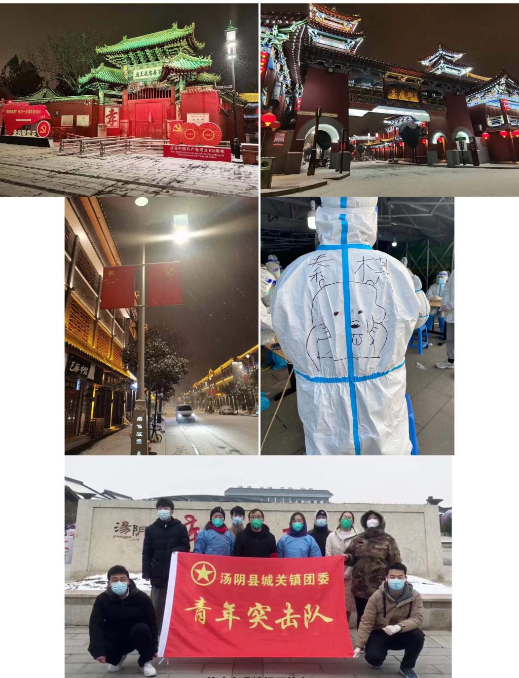 一座50万人的小城,打一场“解放“战争谈何容易?!口罩短缺,防护服紧缺,医用手套短缺,生活用品短缺,米面油紧缺,医生紧缺,护士紧缺……靠着省市的支持,兄弟市的支援,困难被一个个攻克。黄沙百战穿“白”甲,不破“疫情”终不还。白衣执甲,用生命守护生命,汤阴县紧急动员全县全部医护人员,除值班外,全部入村入户进行核酸检测。全县两千余名大学生请缨,披上那一抹“志愿红”,穿上那身“白银甲”,从1月8日到疫情结束,在夜晚里、在寒风中、在大雪天,他们连续奋战,从未归家。这一幕幕,是秦棋所看到的,更是秦棋所经历的。秦棋说:“1月21晚上,工作结束后,回去宾馆的路上,望向窗外,岳飞庙的飞檐翘角、雕梁画栋,岳庙街的古色古香、灯火辉煌,这都令我油然而生一种豪情,‘抬望眼,仰天长啸,壮怀激烈。’这是一个诞生英雄的地方。人人欲战,则所向无前,就一定可以战胜灾难,让这片经历过磨砺的土地春暖花开,欣欣向荣。”